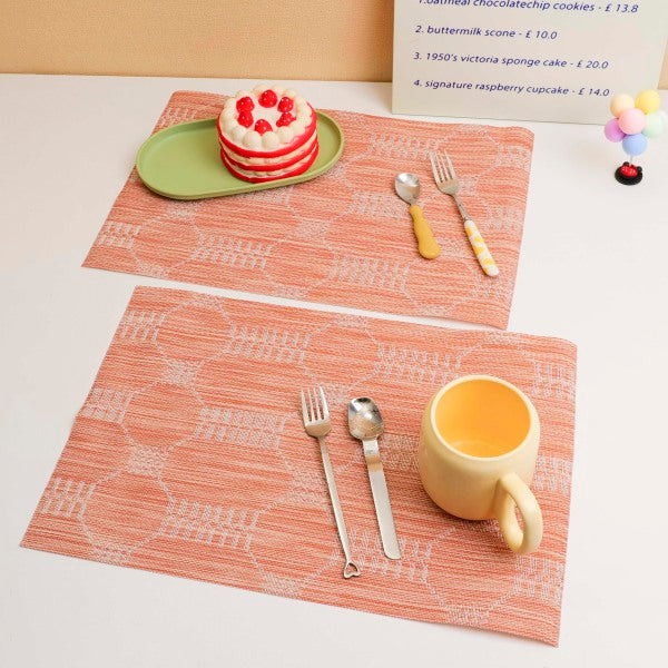 Invigorate your dining experience with this two-piece orange striped placemat set, featuring vibrant linear patterns...