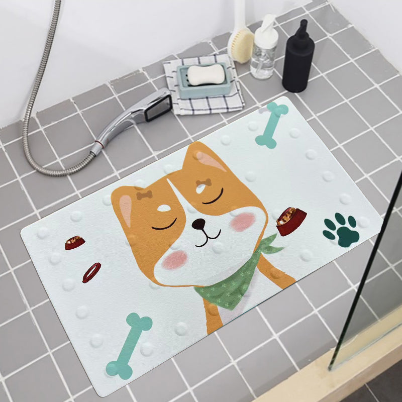 This litchi-textured bathroom mat combines safety with charming design, featuring an adorable dog motif that...