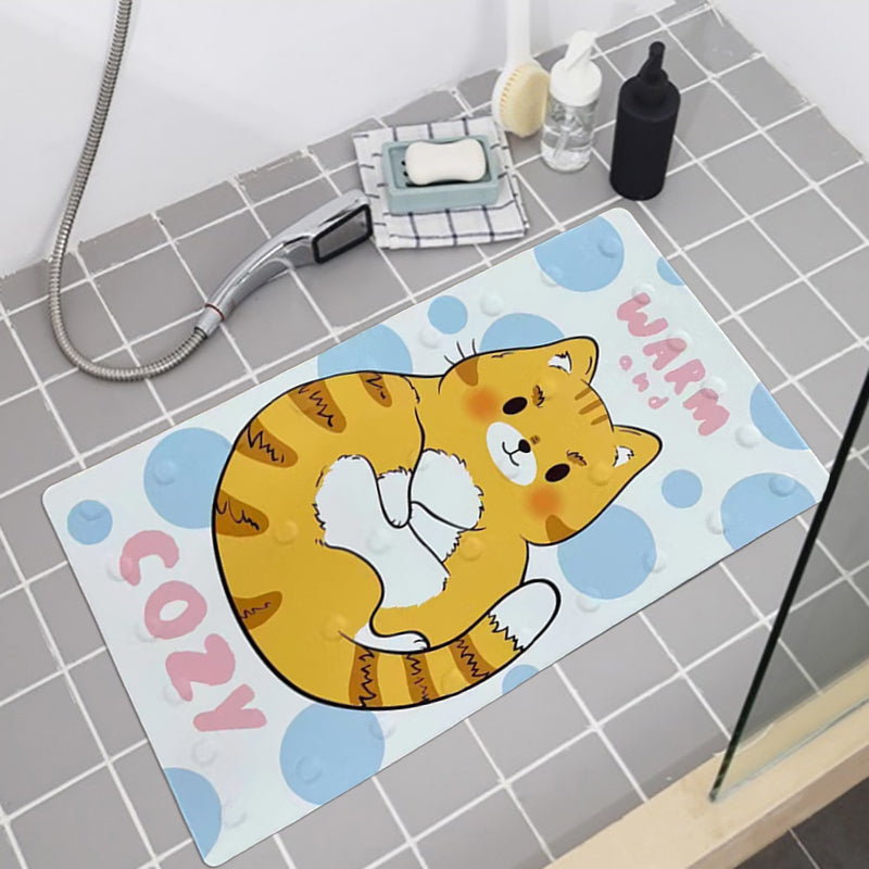 Protect your bathroom floors with this specially designed non-slip mat featuring an adorable kitten motif....