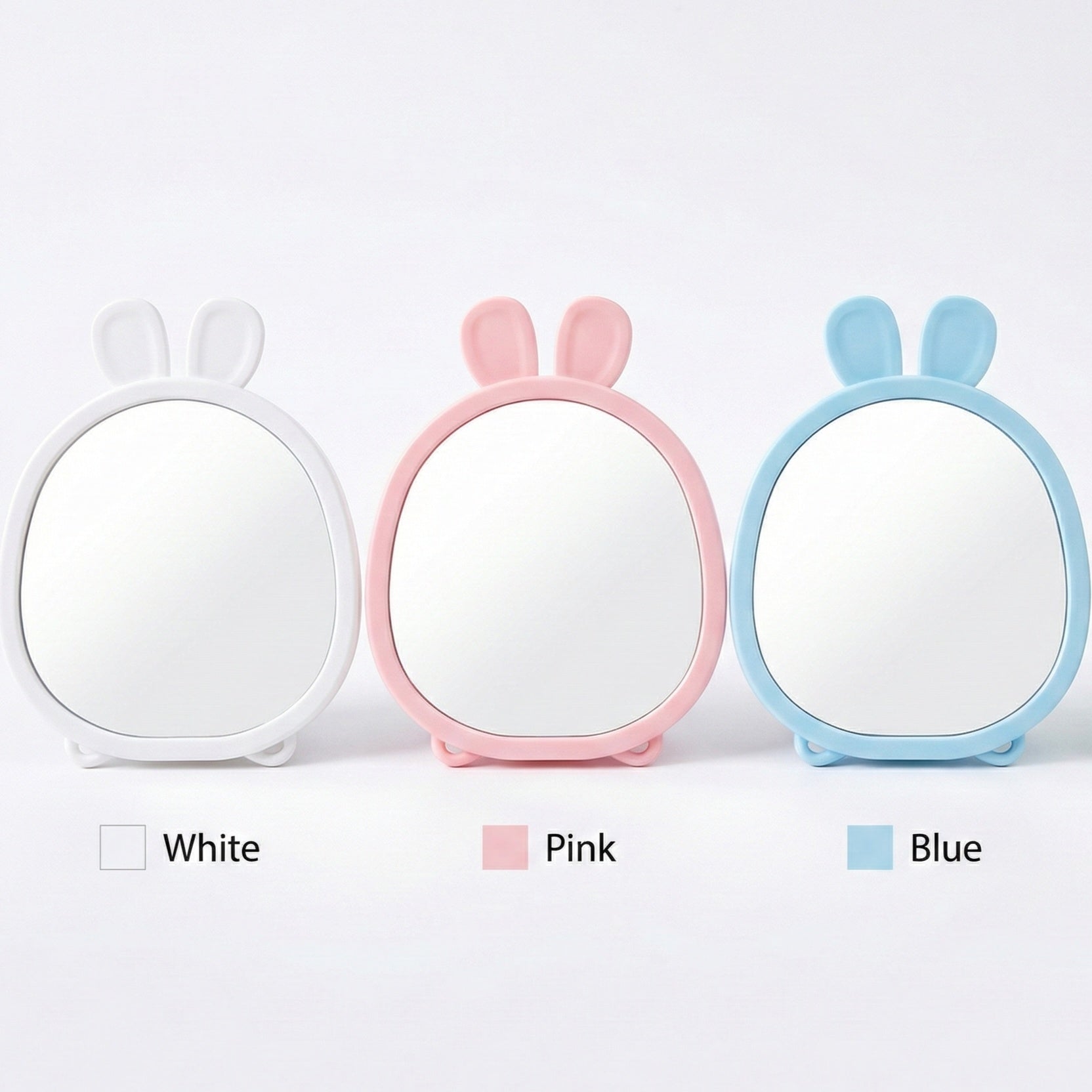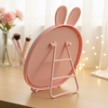 Featuring distinctive rabbit ear-shaped accents, this mirror brings playful character to any bedroom, bathroom, or dressing area. The stable tabletop design ensures reliable placement on desks, dressers, or shelves, while the reflective surface provides clear visibility for grooming and styling. Perfect for those seeking a unique decorative piece that doesn't compromise on practicality, this mirror transforms everyday routines into moments of joy. An ideal gift for animal lovers and design enthusiasts alike.